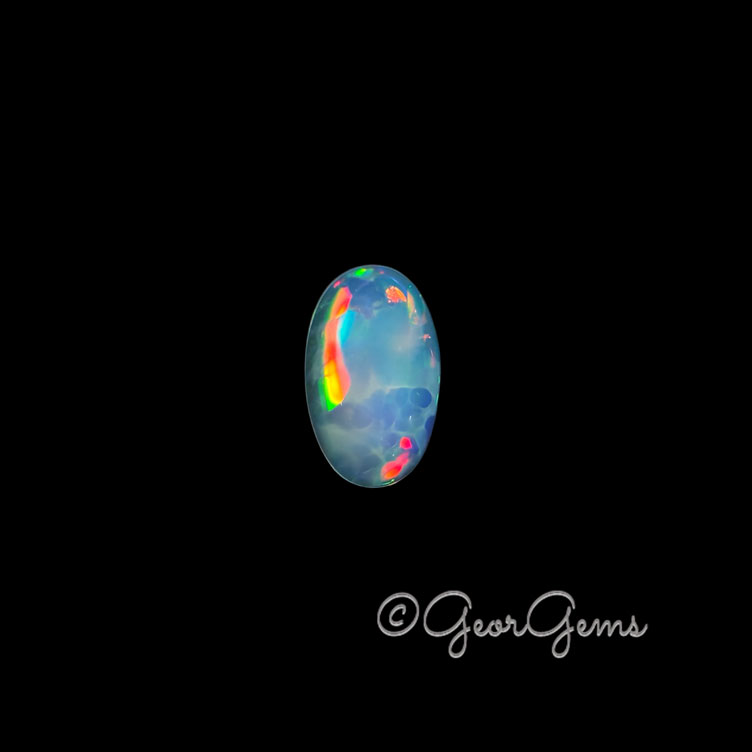Colour Translucent Whitish body displaying green, yellow and red play of colour